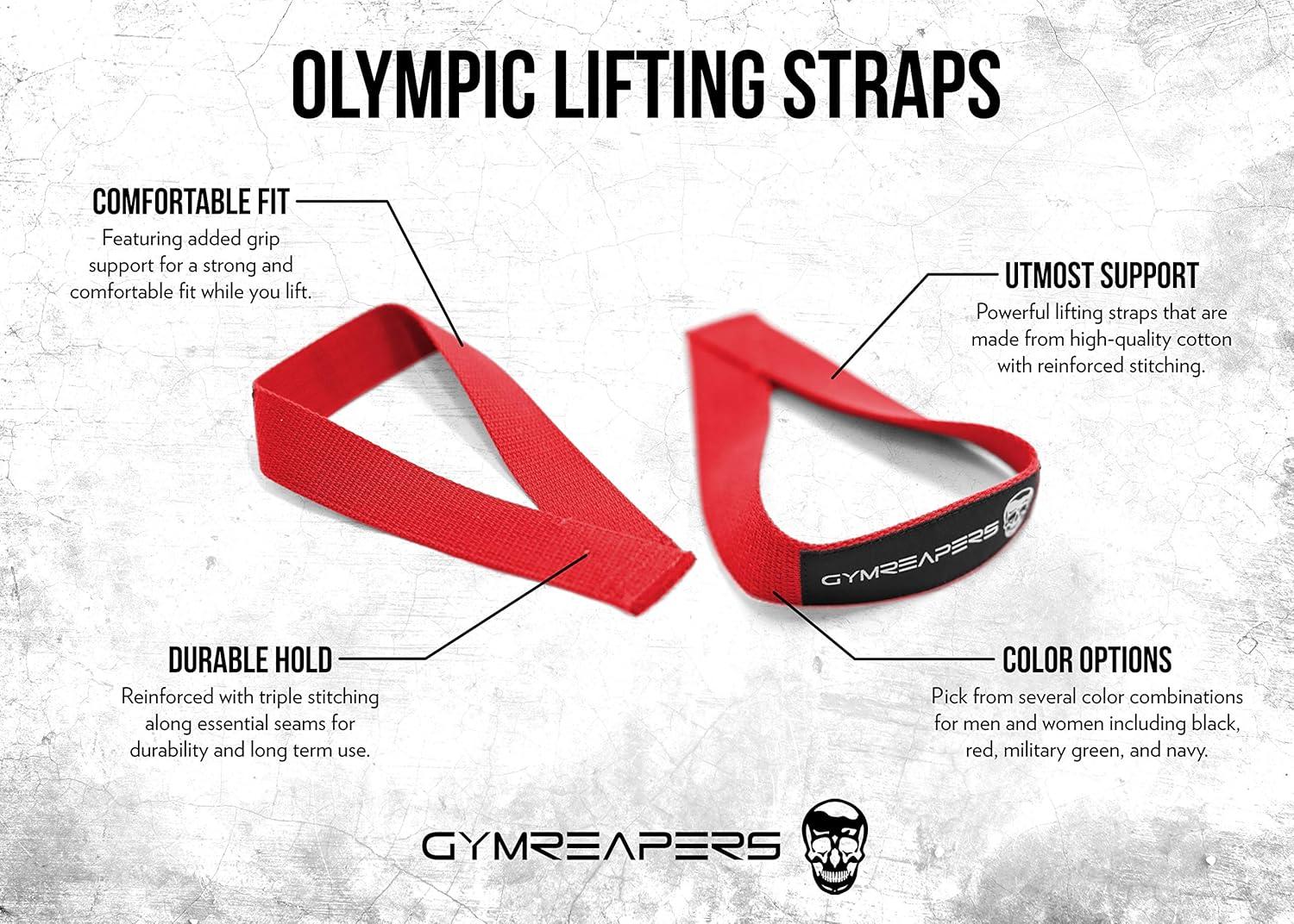 Gymreapers Olympic Lifting Straps for Weightlifting, Snatch, Clean, Powerlifting, Strongman, Deadlifts – Durable Cotton with Reinforced Stitching (Pair)(Red)