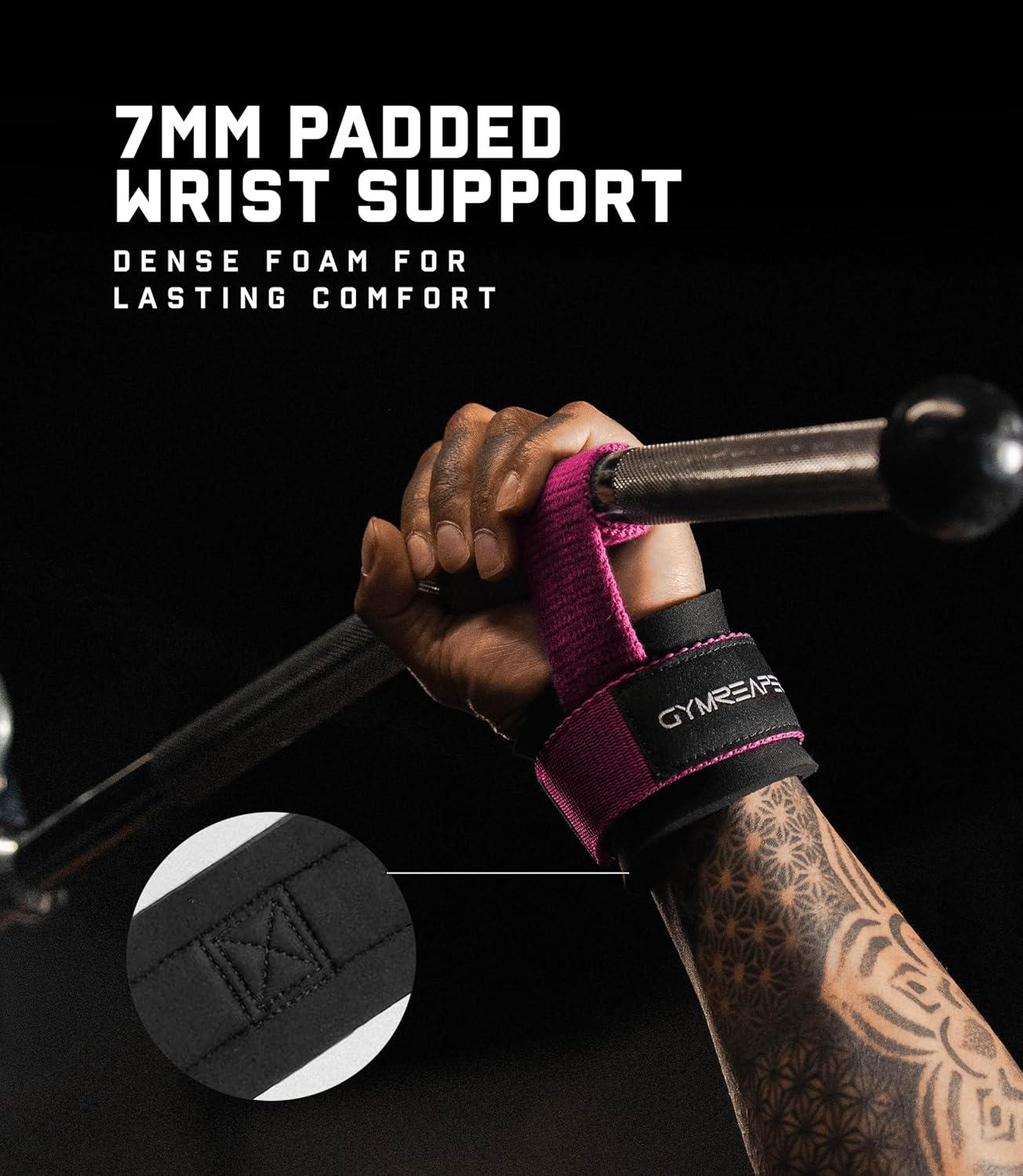 Gymreapers Lifting Wrist Straps for Weightlifting, Bodybuilding, Powerlifting, Strength Training, & Deadlifts – Padded Neoprene with 18 inch Cotton(Pink)