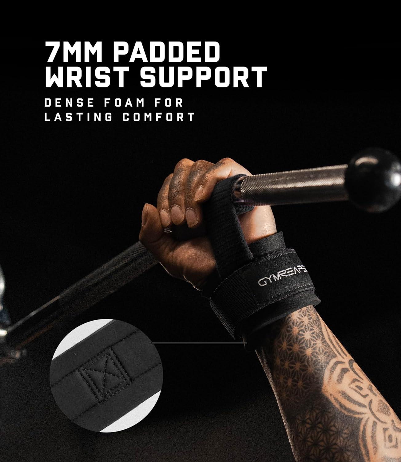 Gymreapers Lifting Wrist Straps for Weightlifting, Bodybuilding, Powerlifting, Strength Training, & Deadlifts – Padded Neoprene with 18 inch Cotton(Black)