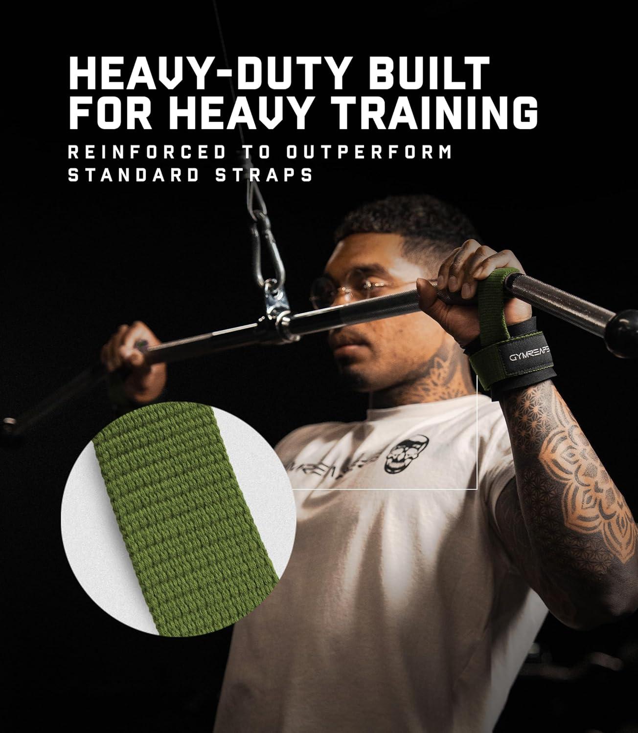 Gymreapers Olympic Lifting Straps for Weightlifting, Snatch, Clean, Powerlifting, Strongman, Deadlifts – Durable Cotton with Reinforced Stitching (Pair)(Military Green)