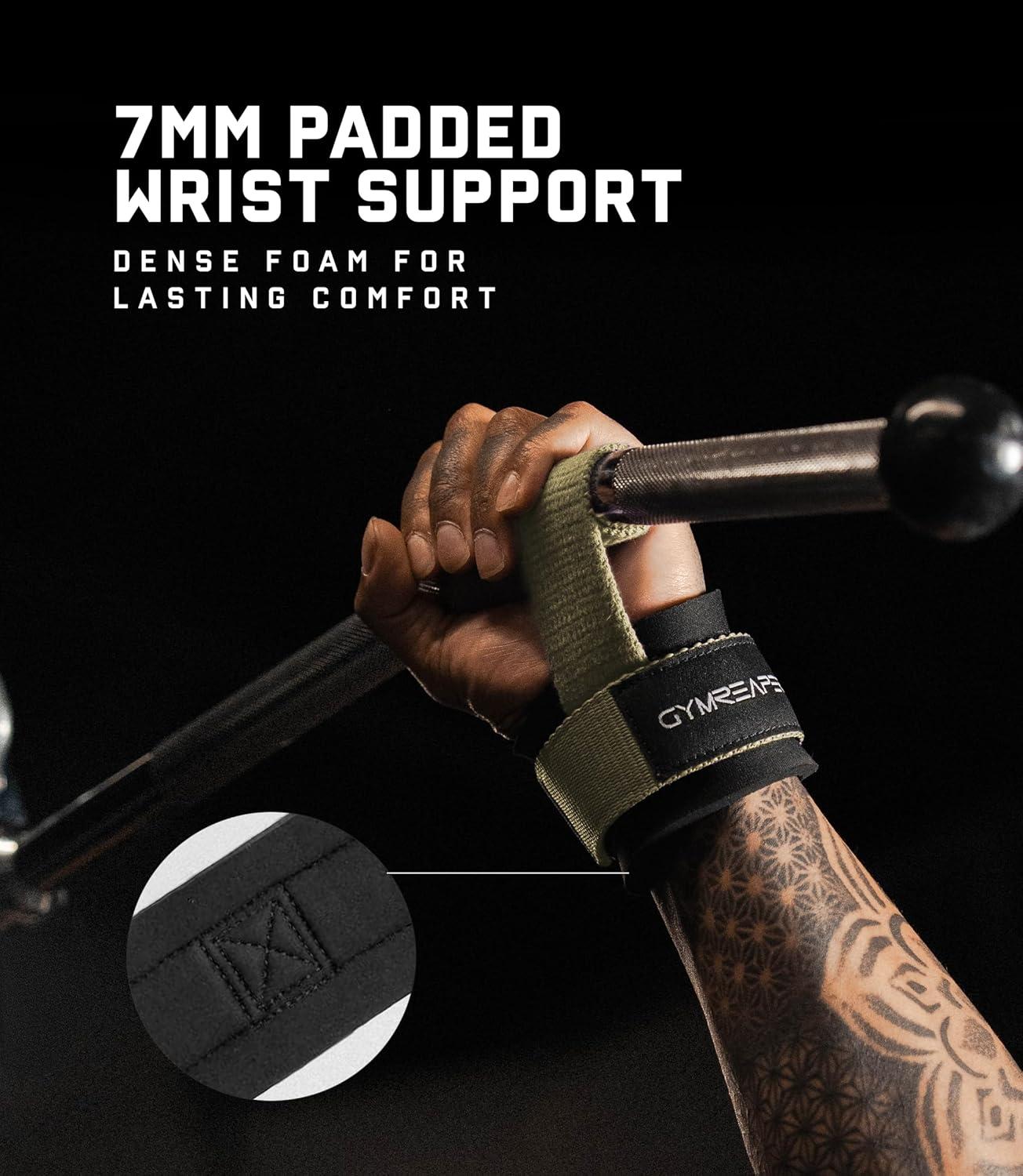 Gymreapers Lifting Wrist Straps for Weightlifting, Bodybuilding, Powerlifting, Strength Training, & Deadlifts – Padded Neoprene with 18 inch Cotton(Military Green)