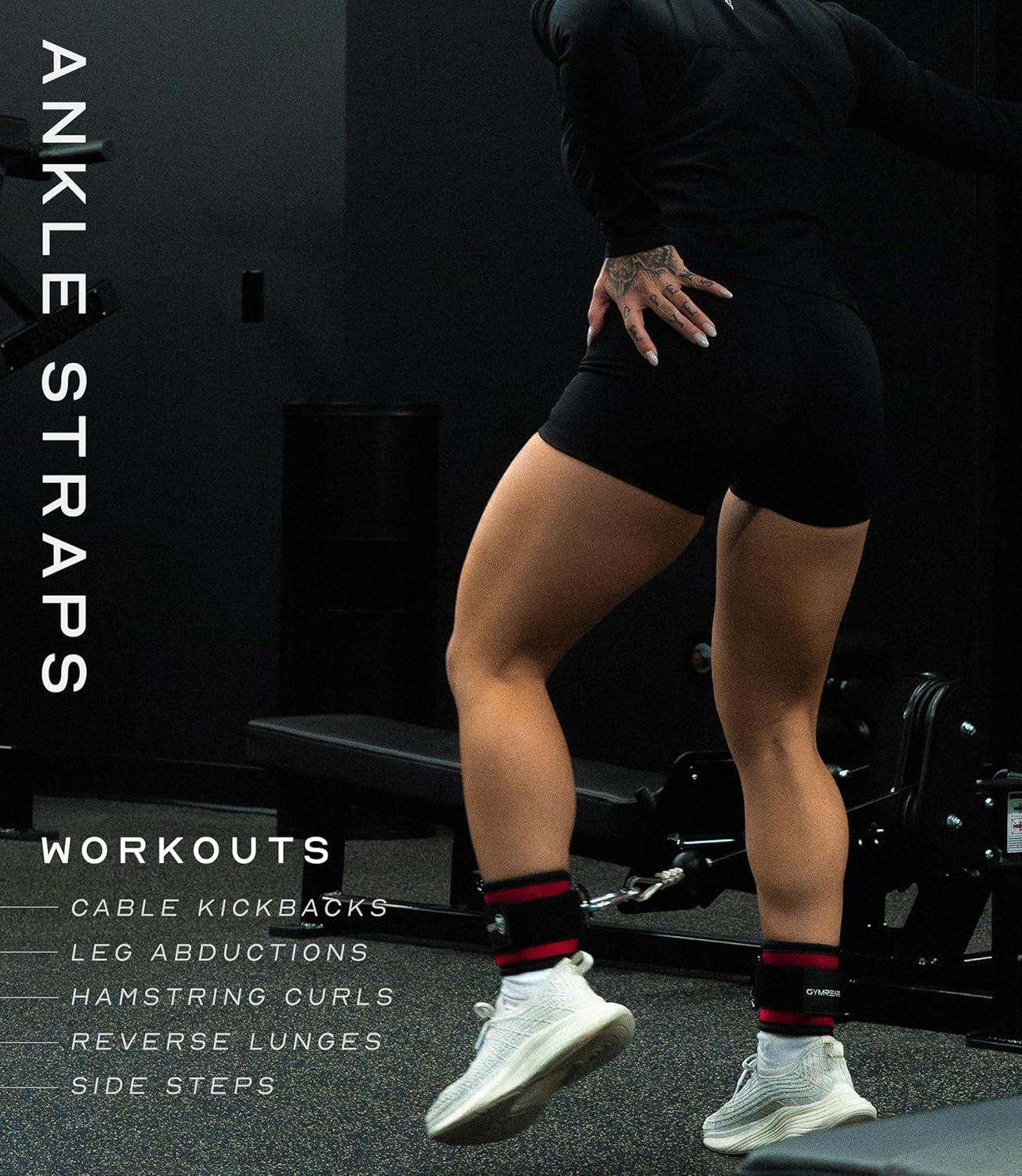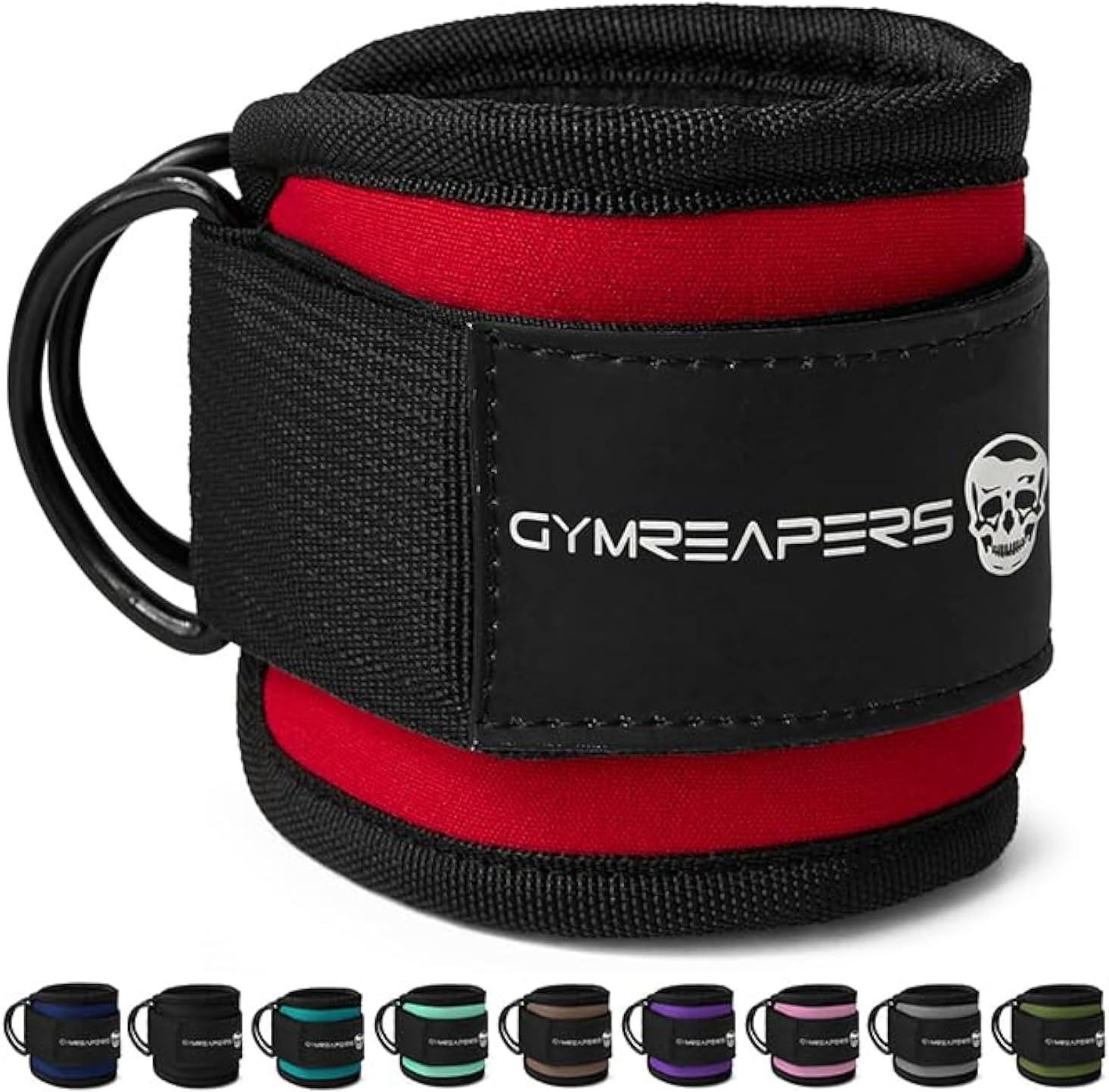 Gymreapers Ankle Straps For Cable Machine Kickbacks, Glute Workouts, Lower Body Exercises – Adjustable Leg Straps with Neoprene Padding(Red)