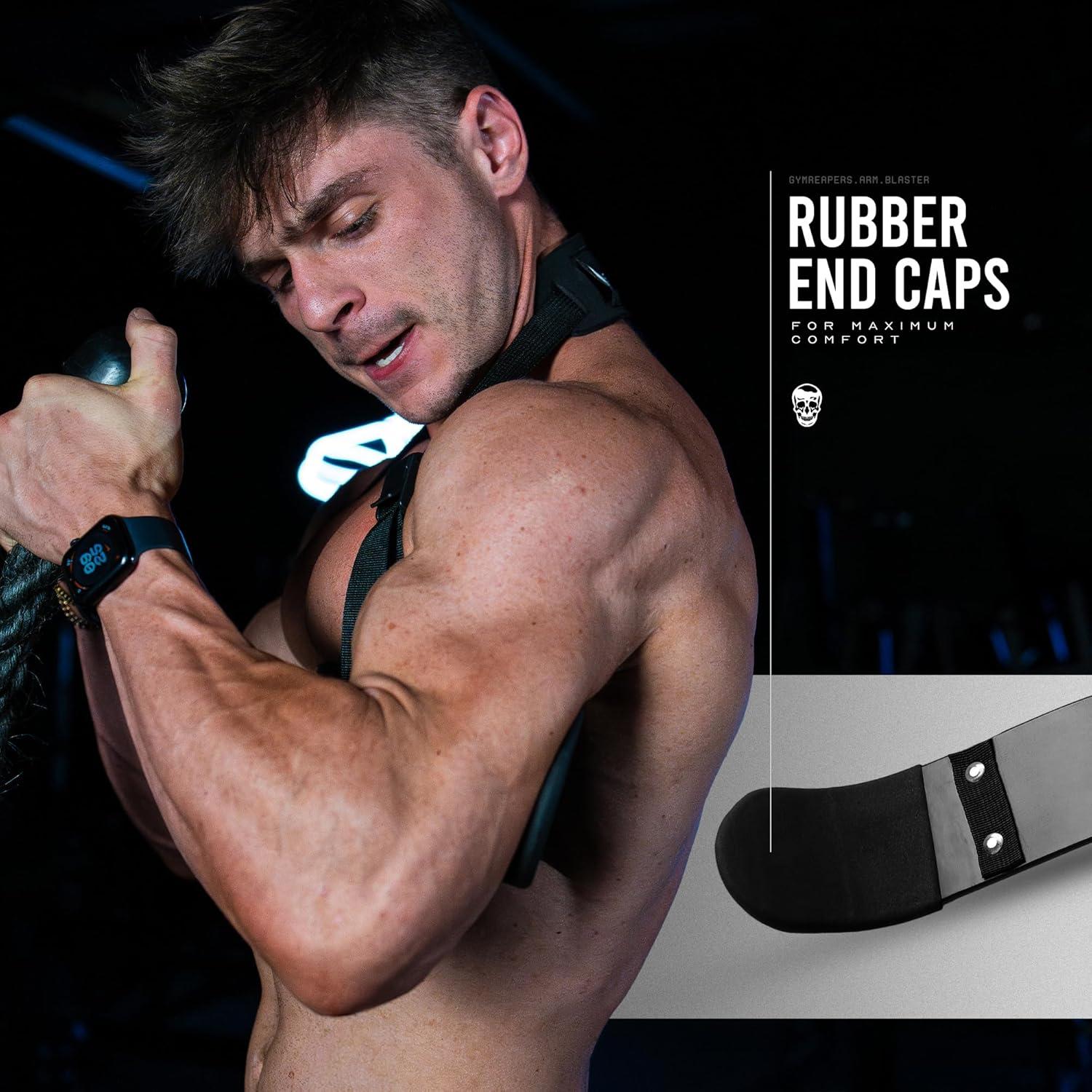 GET BIGGER ARMS WITH BETTER ISOLATION – Gymreapers arm blaster is the industry standard posture supporting tool for your arm workouts. The blaster supports your body by forcing you to tuck your elbows by your side, enabling proper posture while isolating your arms when weightlifting and bodybuilding. With our trademark skull logo and all black color our arm blaster is a must have in your training arsenal.