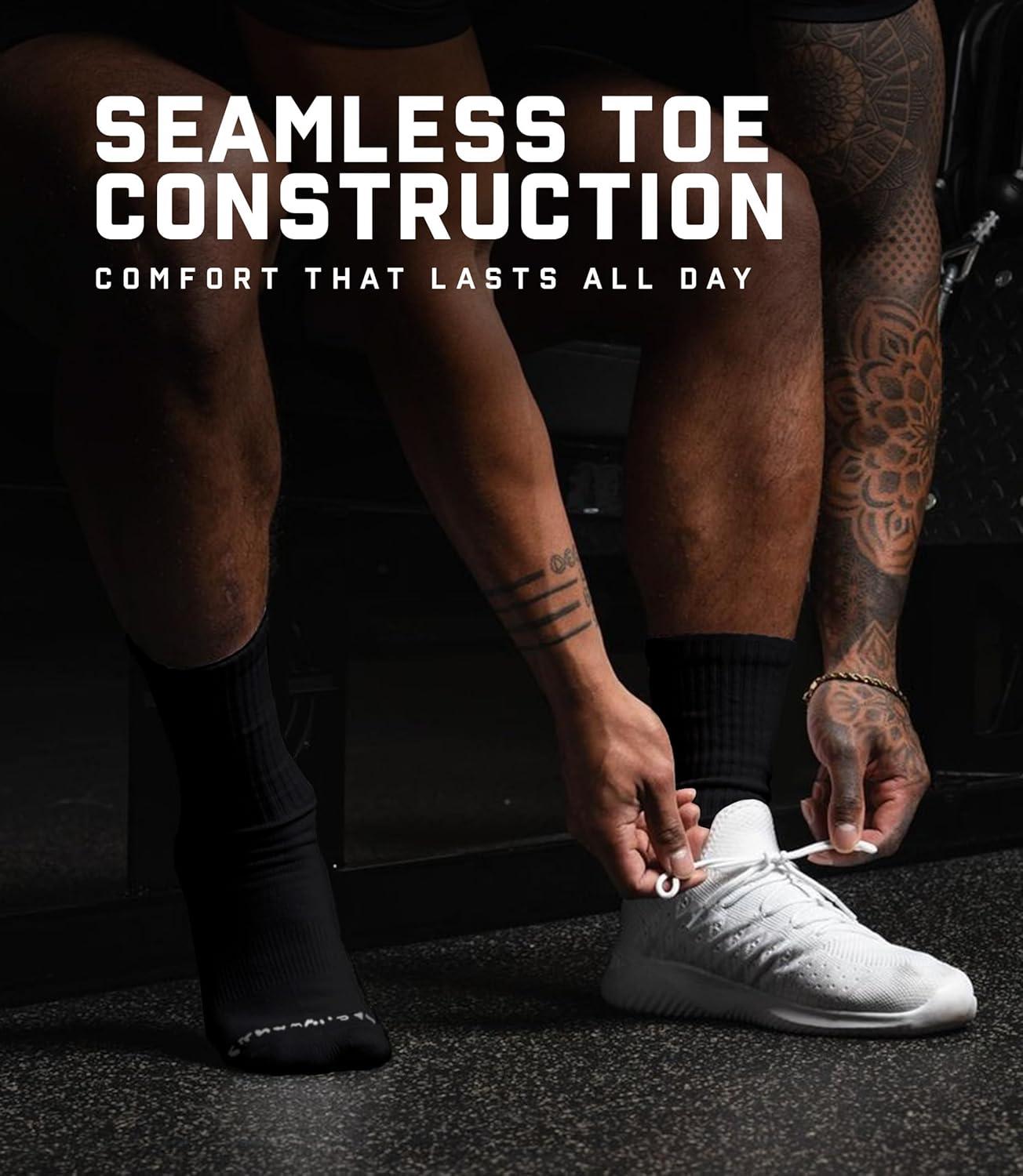 Gymreapers Crew Socks For Men & Women (6-Pack) – Long Moisture Wicking 100% Cotton Socks – Breathable Supportive Fit Socks(Black (6-pack))