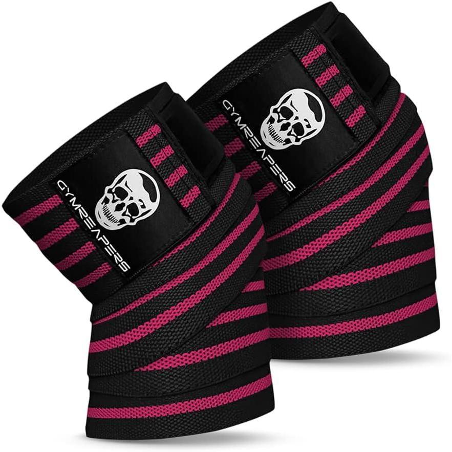 Gymreapers Knee Wraps for Squats and Powerlifting 72 Inch Compression Wraps with Strap for Men & Women Weightlifting Support(Pink)