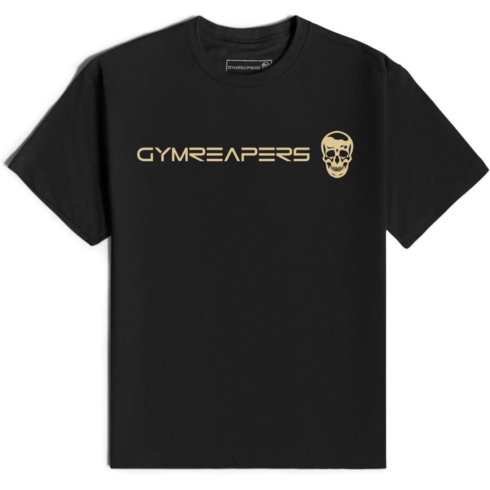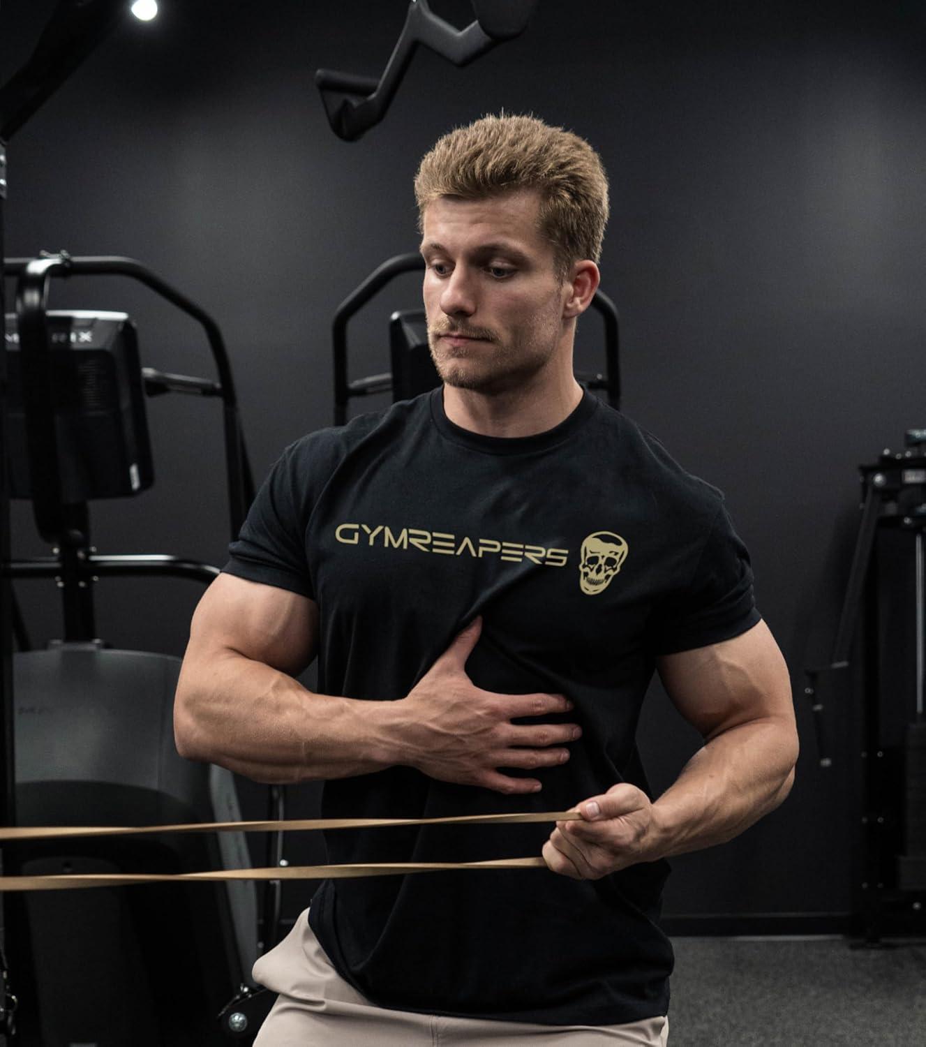 Gymreapers Moisture Wicking Short Sleeve T-Shirt for Men – Crew Neck Workout Shirts – Casual Gym Cotton Everyday Tee(Black/Tan)