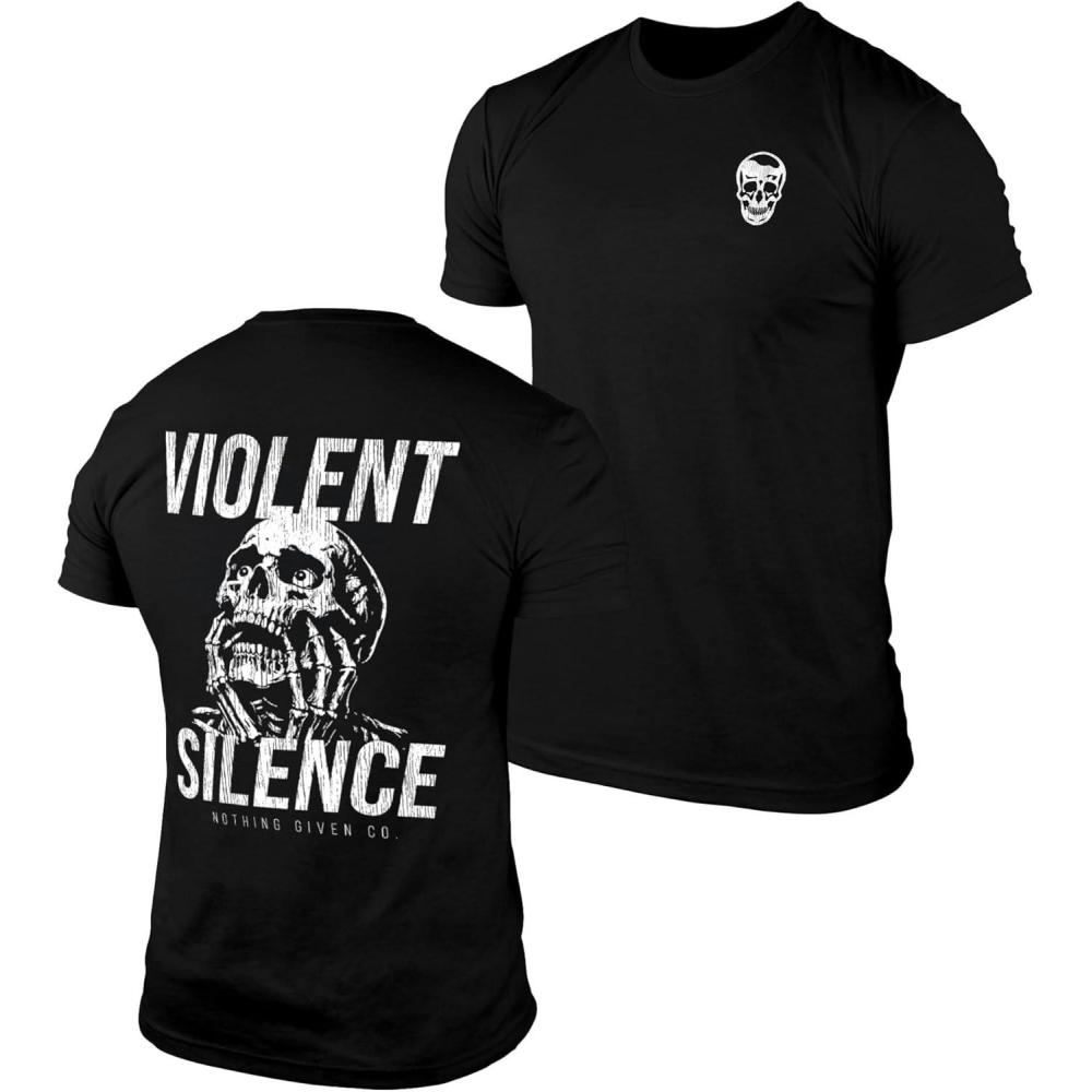 Gymreapers Skull Moisture Wicking T-Shirts for Men – Short Sleeve Workout Gym Shirts – Running Athletic Tees & Dry Fit Tshirt(Violent Silence)