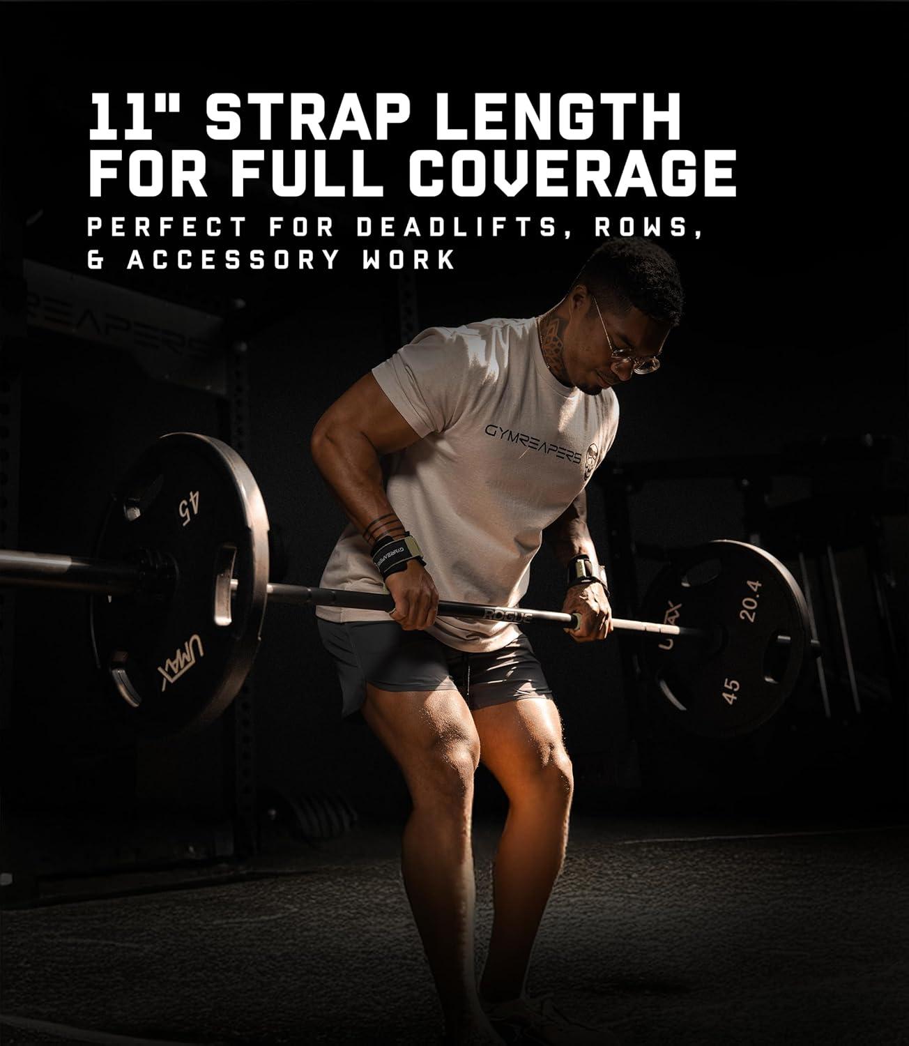 GYMREAPERS LIFTING STRAP WITH DOWEL – Designed for serious strength athletes, our dowel lifting strap delivers a locked-in grip and high-performance wrist support for heavy barbell work. Whether you're deadlifting, rowing, or pulling for reps, the built-in dowel anchors your grip to the bar, minimizing fatigue and maximizing focus. Built for training intensity, the strap stays secure without slipping or twisting mid-set. Reinforced for durability and padded for comfort—this is your go-to tool for heavy pulling.