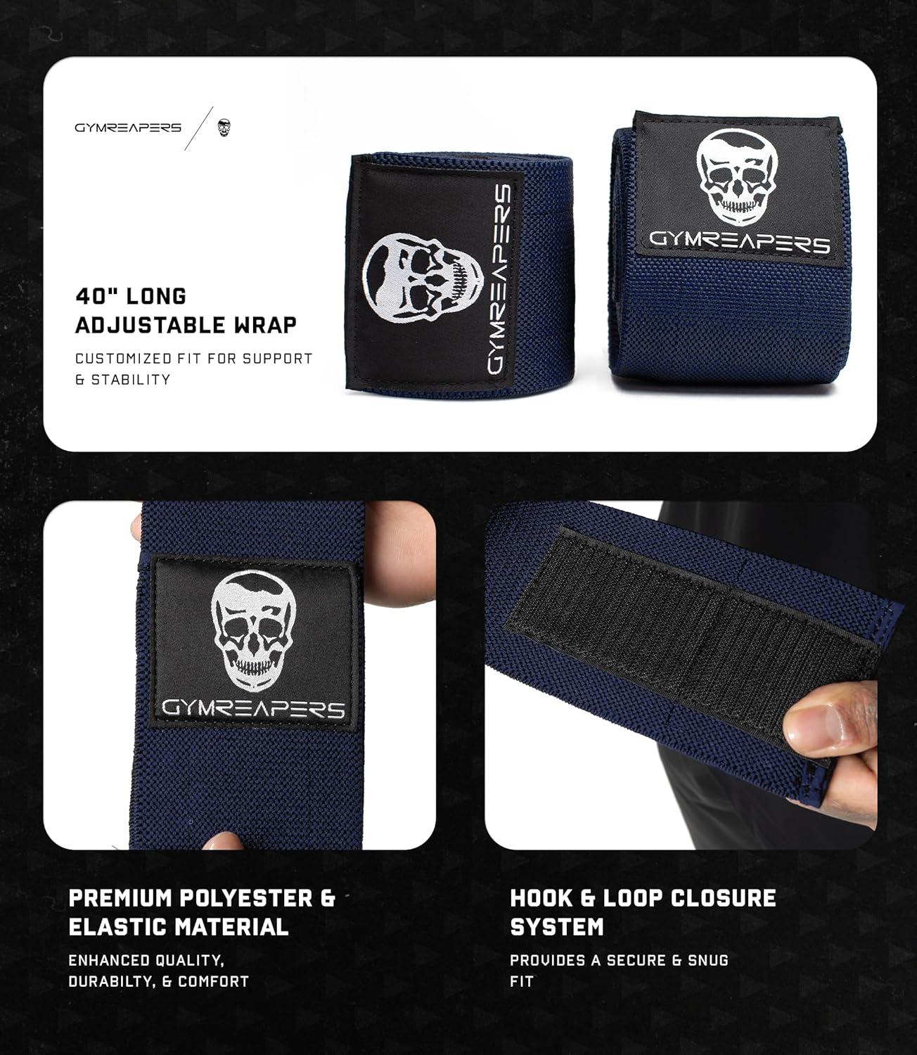 Gymreapers Weightlifting Elbow Wraps (1 Pair) – Flexible 40” Elbow Compression Strap & Joint Support Brace – for Bench Press, Powerlifting, and Pressing(Navy)