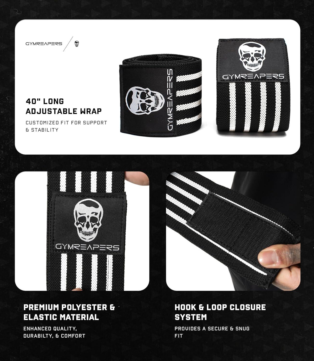 Gymreapers Weightlifting Elbow Wraps (1 Pair) – Flexible 40” Elbow Compression Strap & Joint Support Brace – for Bench Press, Powerlifting, and Pressing(White)