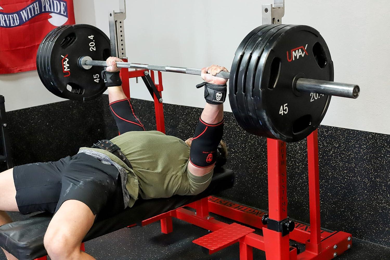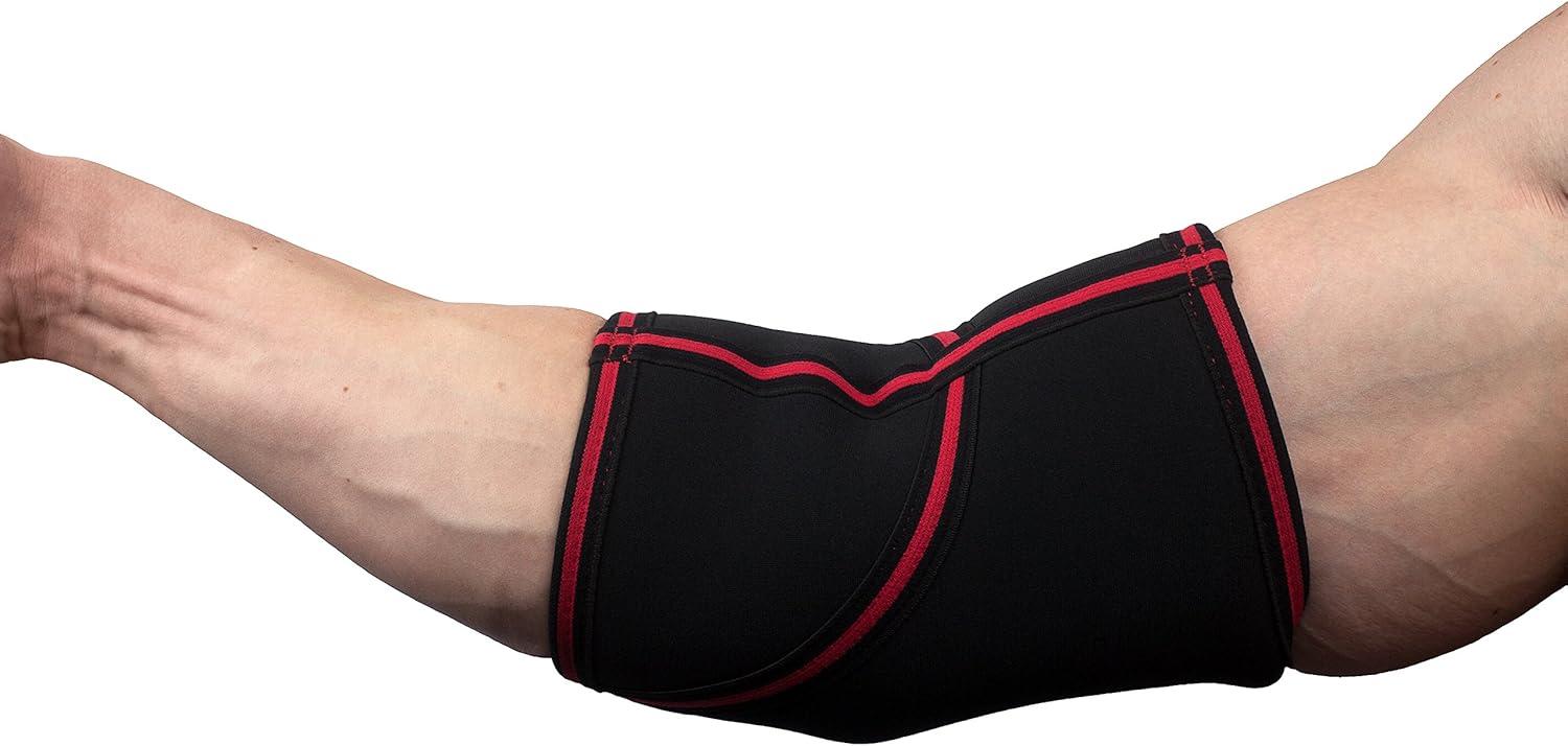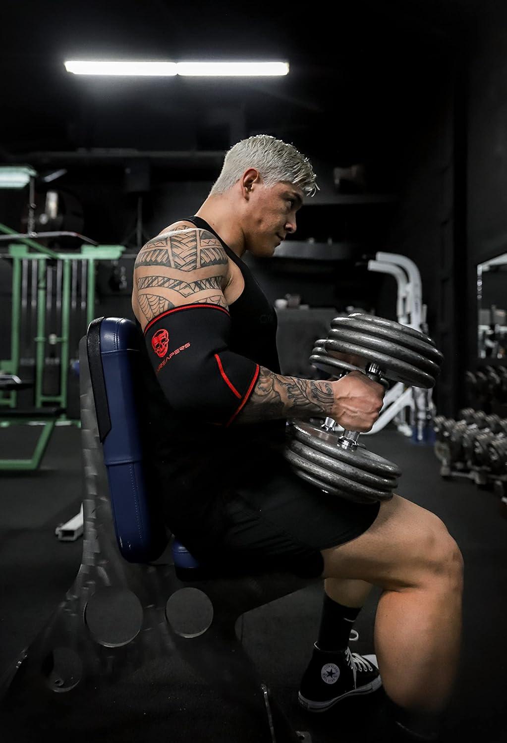 Gymreapers Elbow Sleeves for Weightlifting Powerlifting and Bench Press Support and Compression for Tendonitis Pain Relief 5mm Neoprene Training Gear for Men and Women(Black/Red)