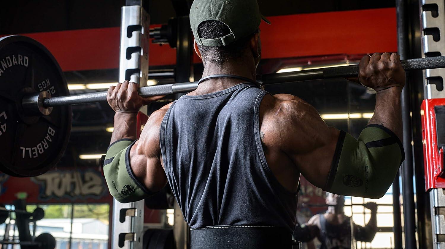 Gymreapers Elbow Sleeves for Weightlifting Powerlifting and Bench Press Support and Compression for Tendonitis Pain Relief 5mm Neoprene Training Gear for Men and Women(Military Green/Black)